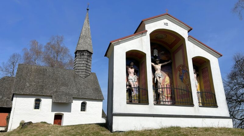 Passing through all the Jauntaler Fastentücher und Forsythien in Schwabegg, Rinkolach, St. Stefan und St. Michael und die Kreuzwegstationen bei der Kirche Maria am Berge in Eberndorf
