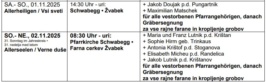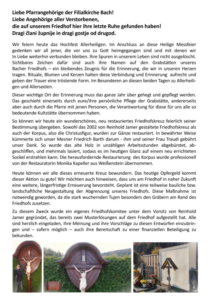 Allerheiligengottesdienste in Neuhaus und Bach mit Provisor Mag. Tivadar Jasura +