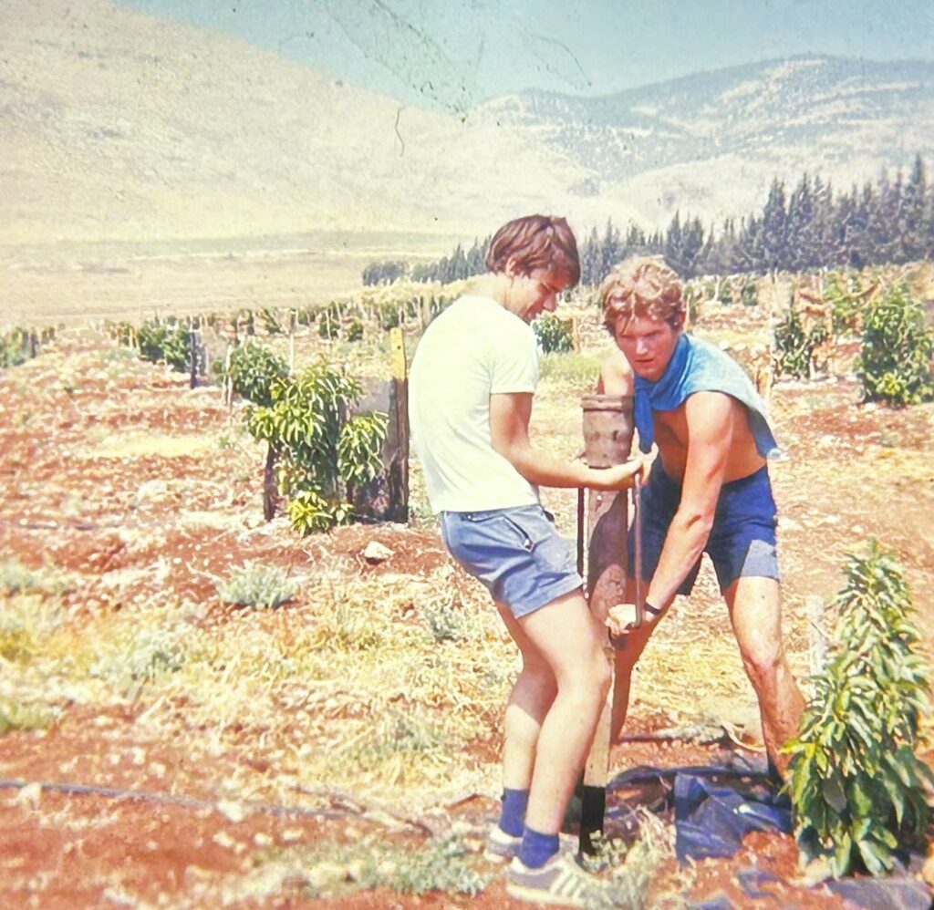 Im Jahr 1977 war die Arbeit in den Avocado-Plantagen ein zentraler Bestandteil des Alltags für Freiwillige im Kibbuz Mesilot. Für die Pflege der Plantagen wurden unter anderem handgeführte Pfahlrammen verwendet, um Stützen oder Windschutzzäune in den Avocado-Feldern zu installieren.