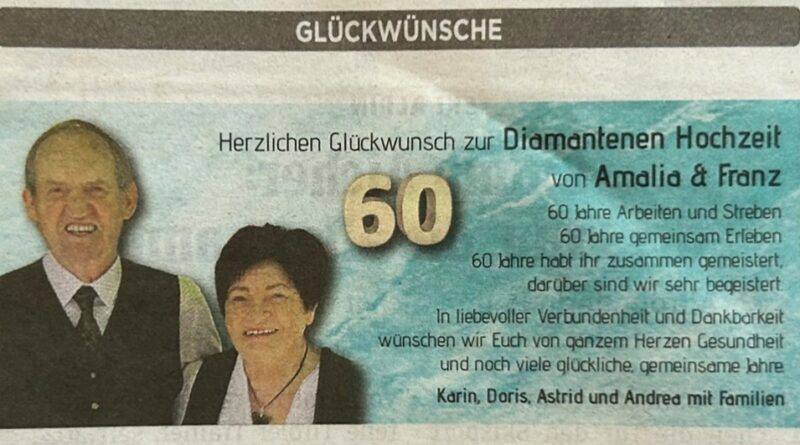 WeiterlesenHerzlichen Glückwunsch zur Diamantenen Hochzeit! # Geschafft! Excited about playing United! # Volle Parkplätze entlang der Koralmbahnstrecke # Hofübergeberehrung Schloss