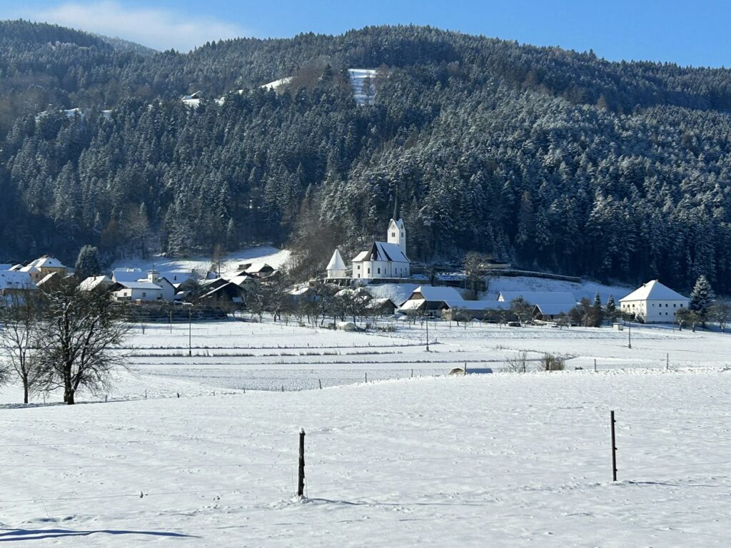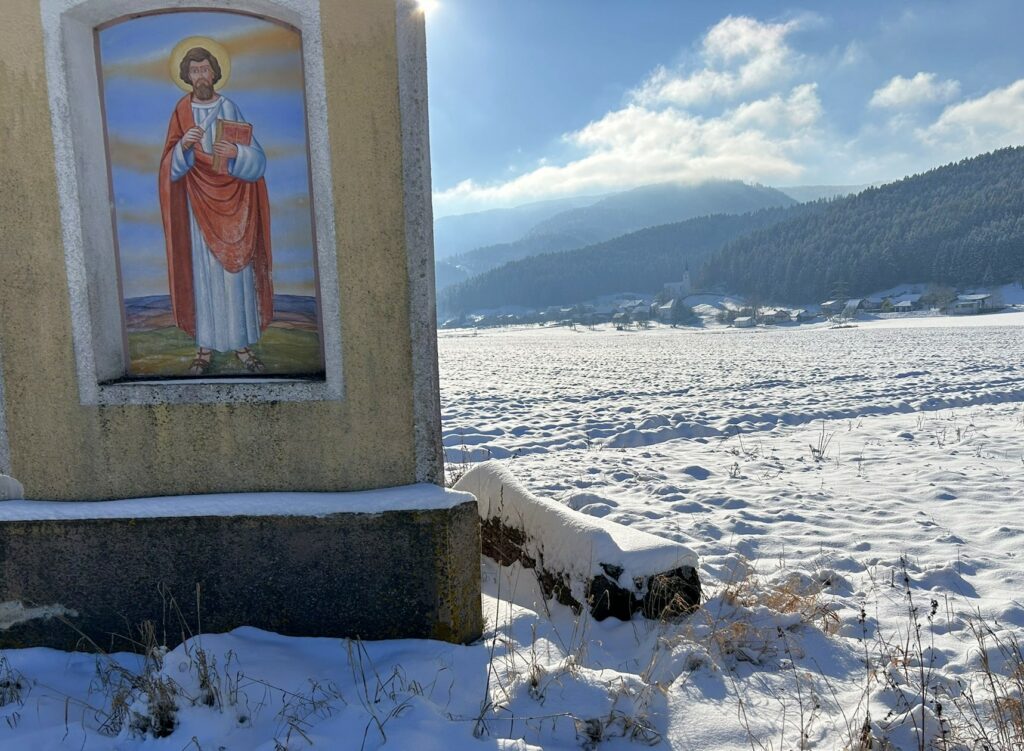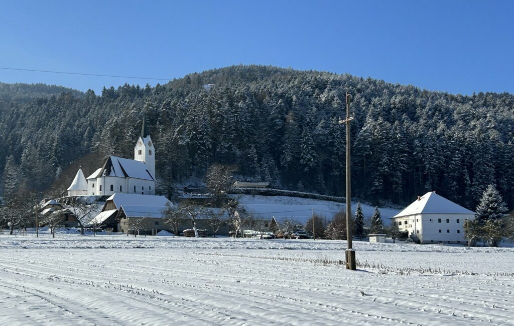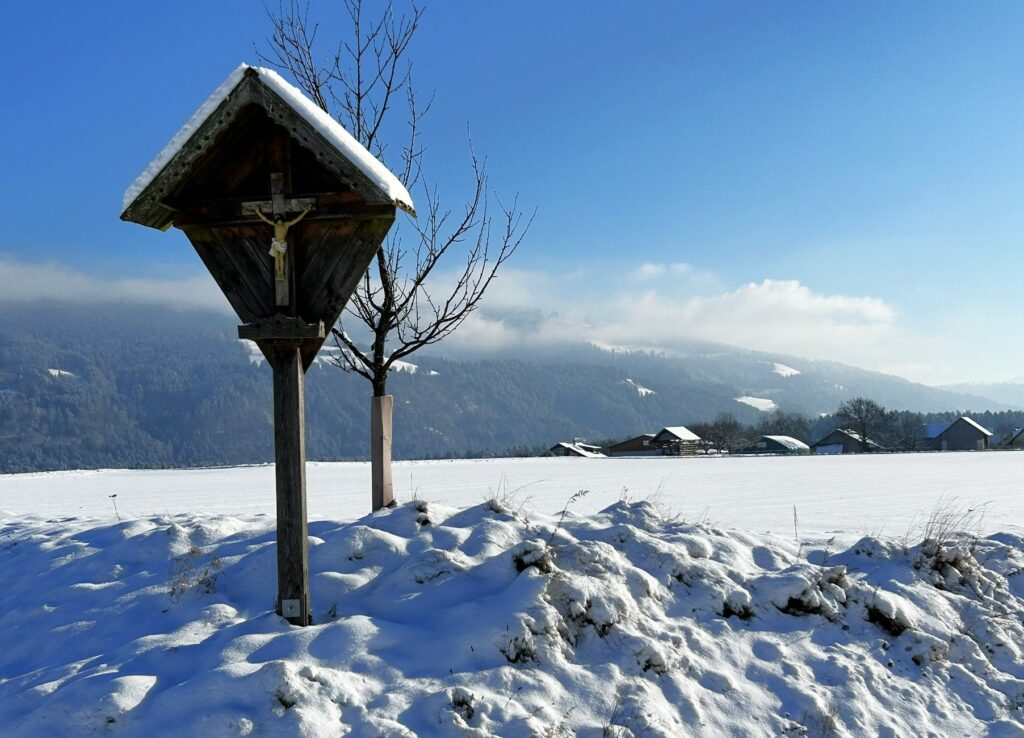 Der Wintersonne entgegen über die Bacher Felder zu Damijan Cehners Aviofun in Libeliče