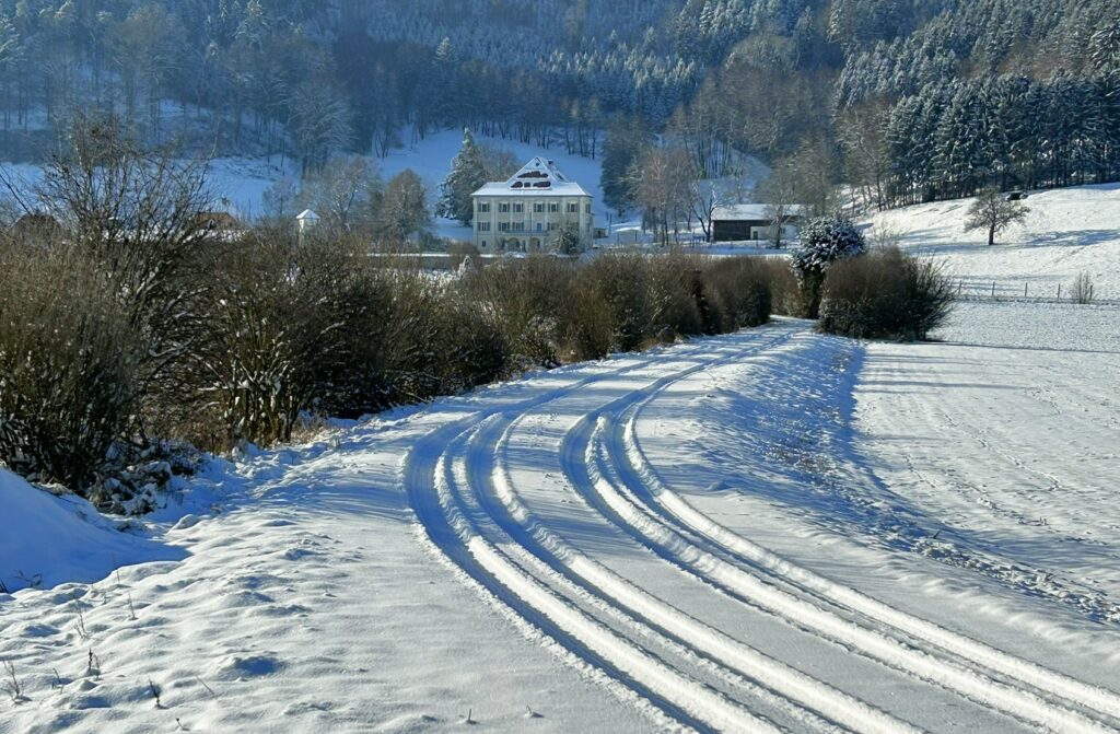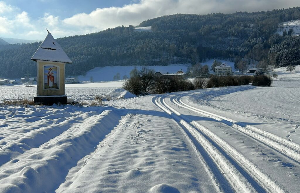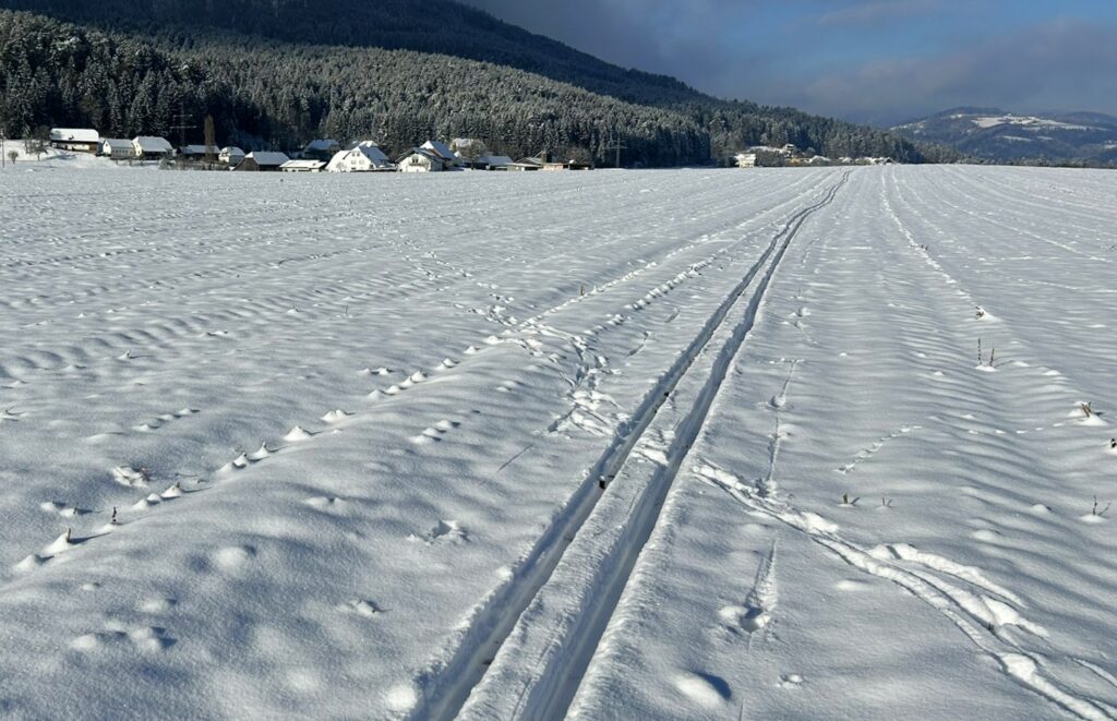 Traktor- und Autospuren verhelfen zu einer brauchbaren Loipe