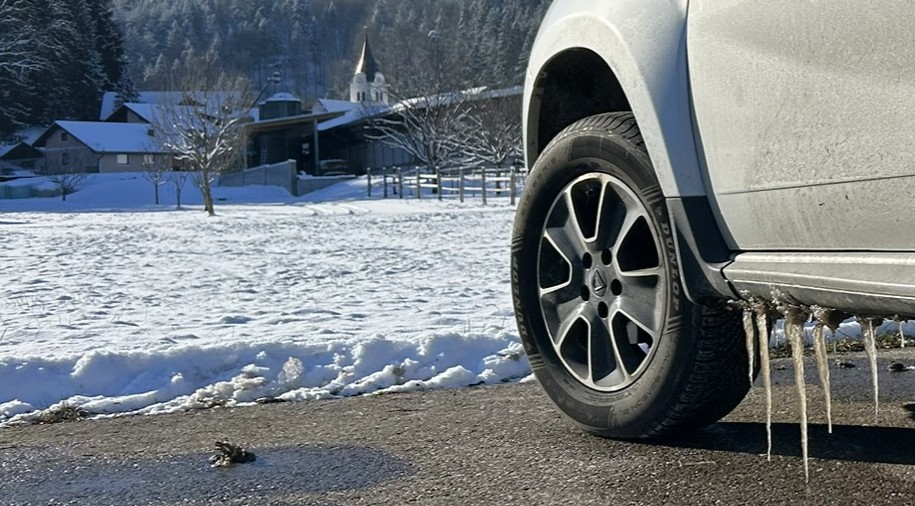Eiszapfen am Auto nach drei Stunden am Parkplatz