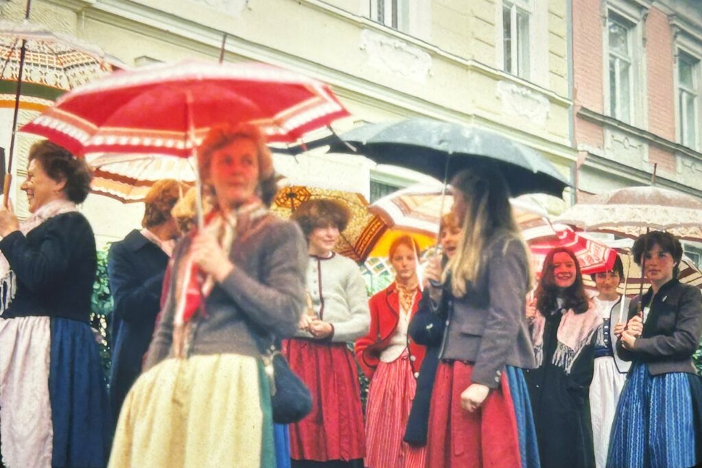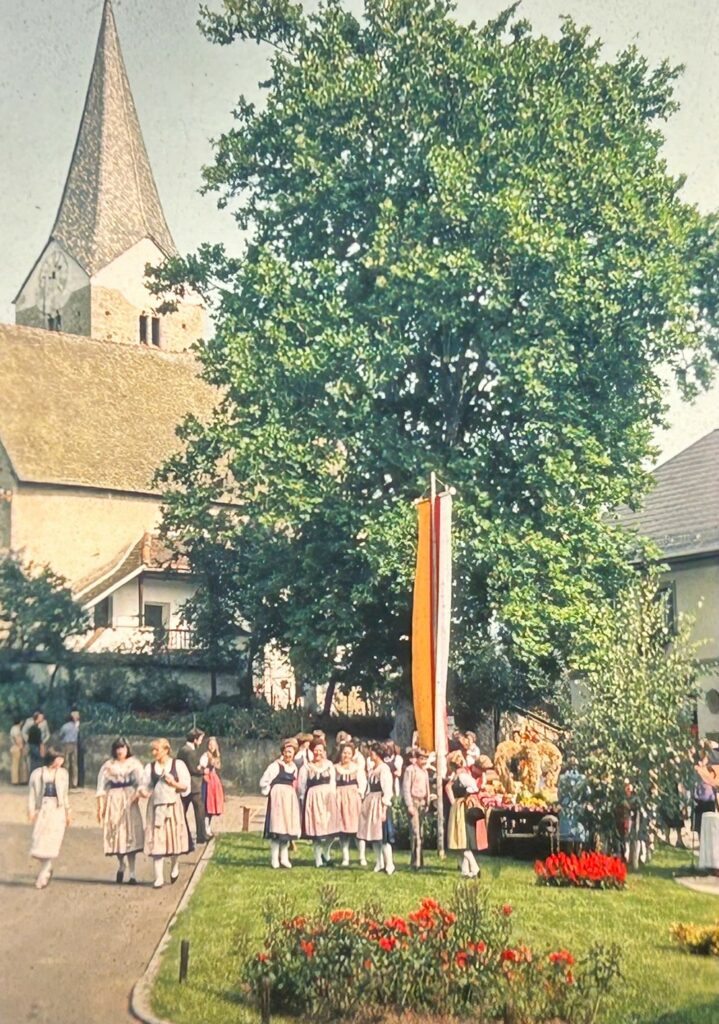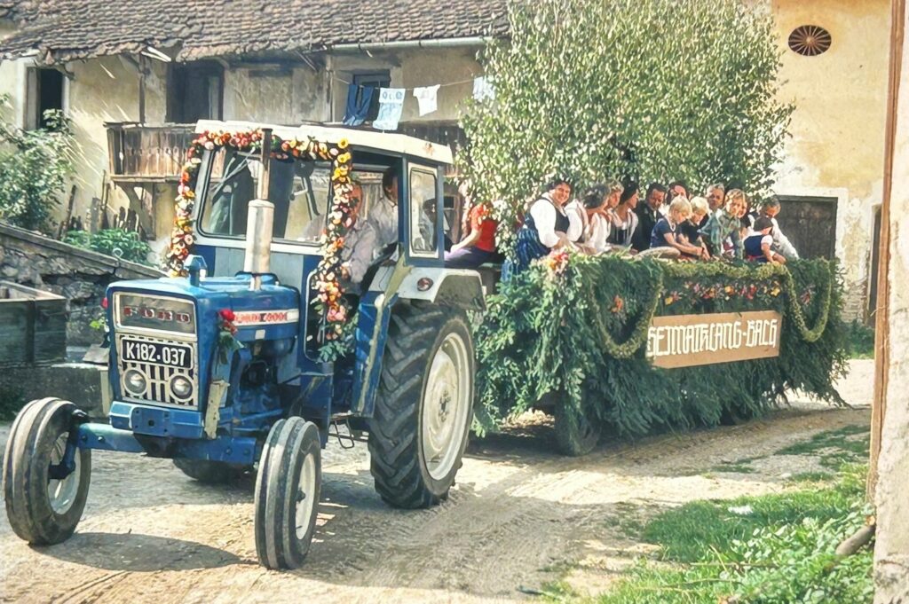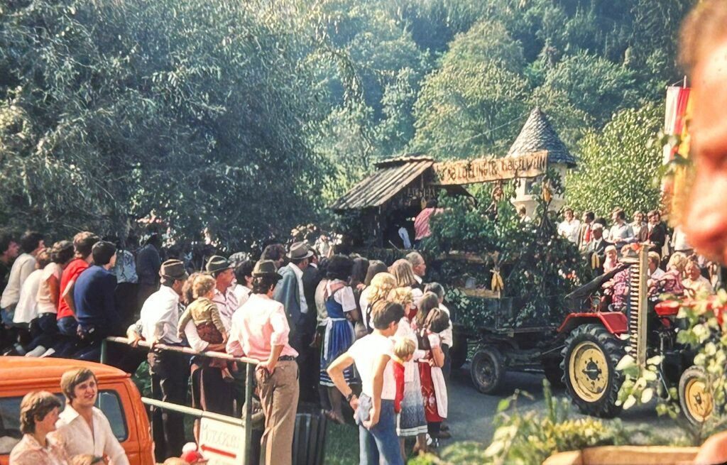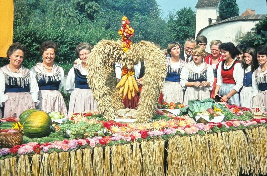 Farbenfroher Rückblick auf die Teilnahme des „Heimatklang“ Bach beim Erntedankfest der Schlosskapelle Neuhaus im September 1980 #