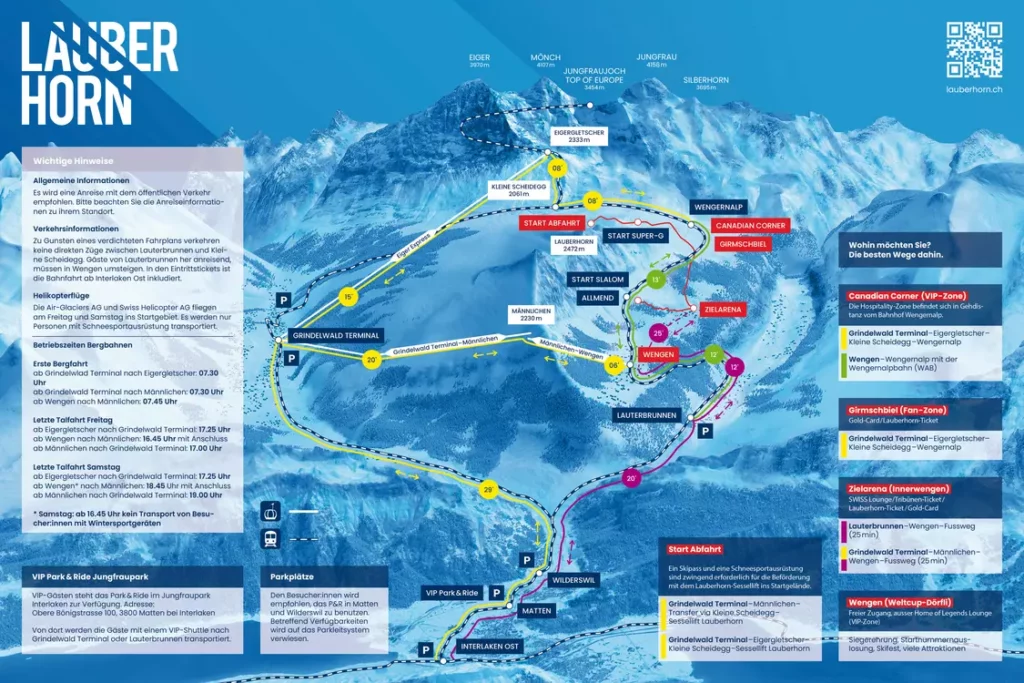 Blick vom Aussichtsfenster in der Eiger-Nordwand auf die Lauberhornabfahrtsstrecke in Wengen
