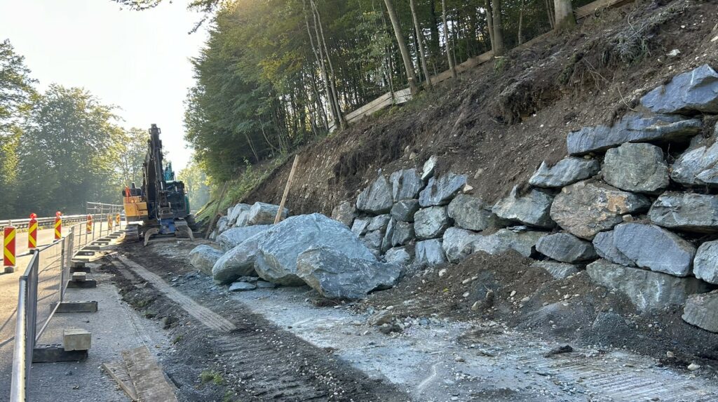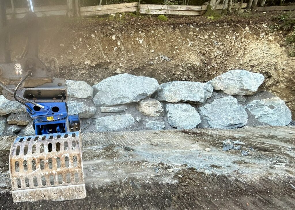 In Beton verlegte neue Steinschlichtung mit Drainagen