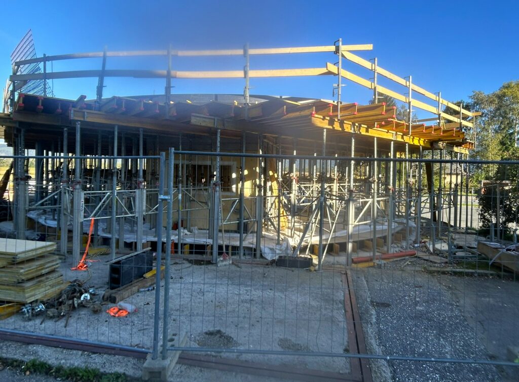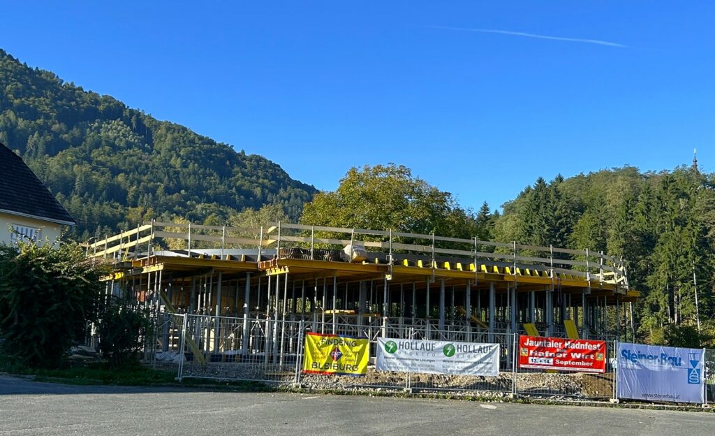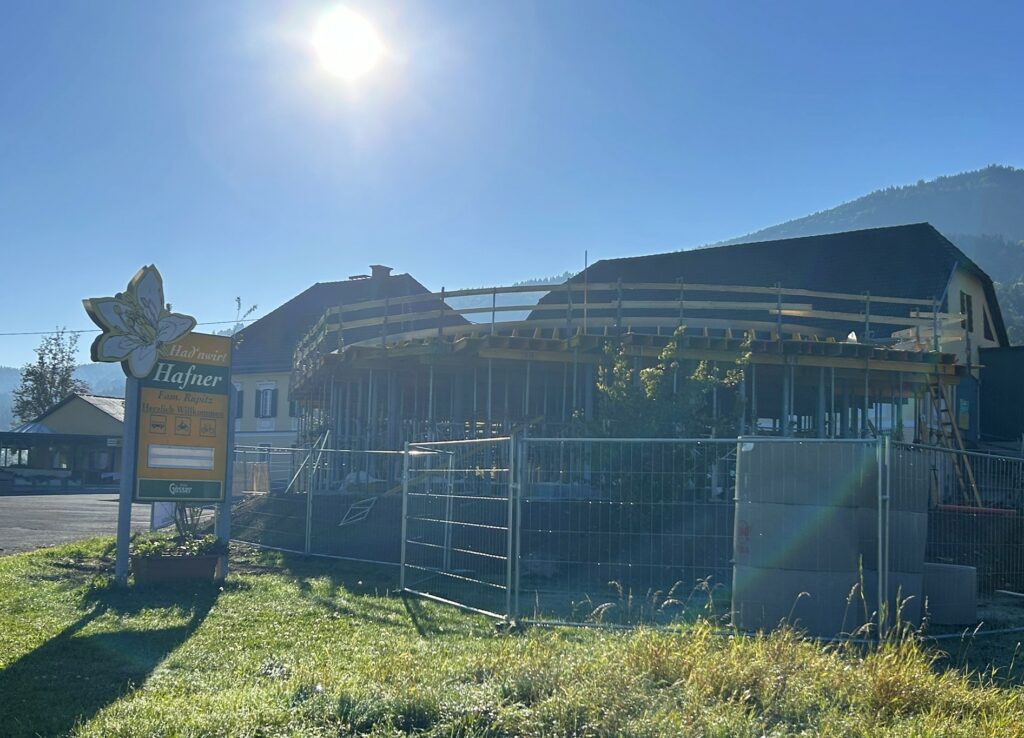 Rasche Baufortschritte beim künftigen „Dorf-Rad-Markt-Pavillon“ beim Gasthaus Hafner