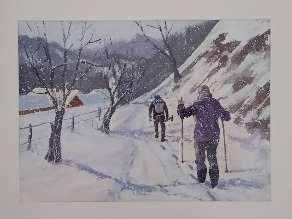 Zimski sprehod. Akvarel – Winterlicher Spaziergang. Aquarell