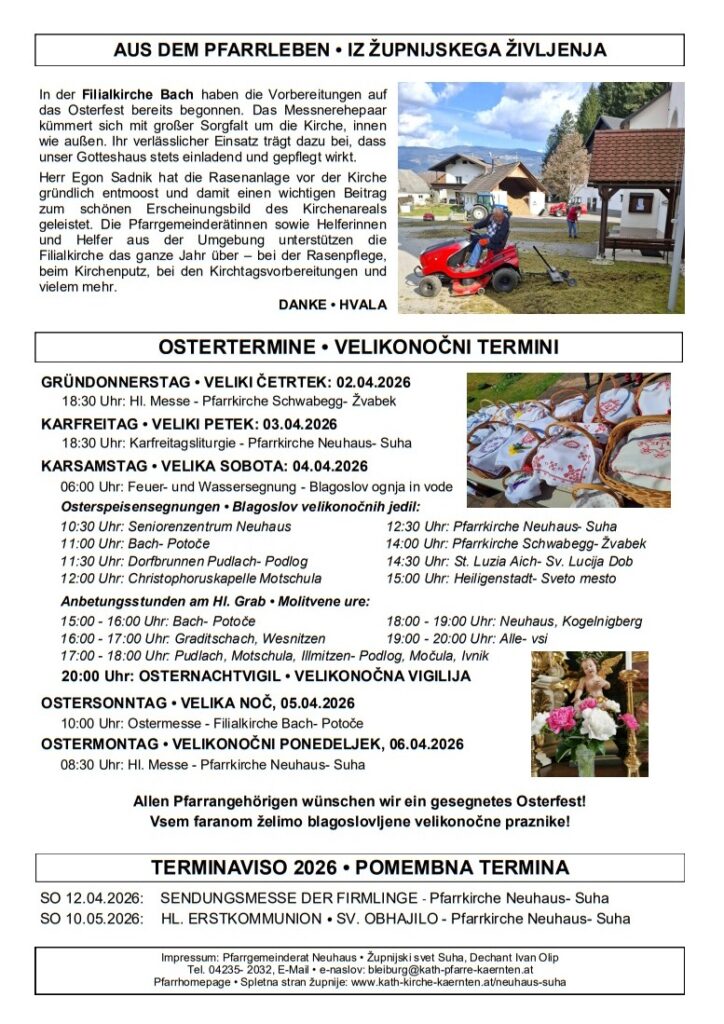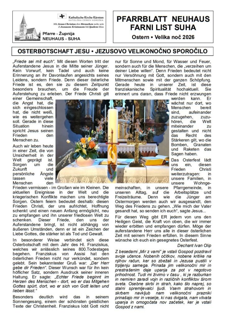Das Osterpfarrblatt der Pfarre Neuhaus/Suha +