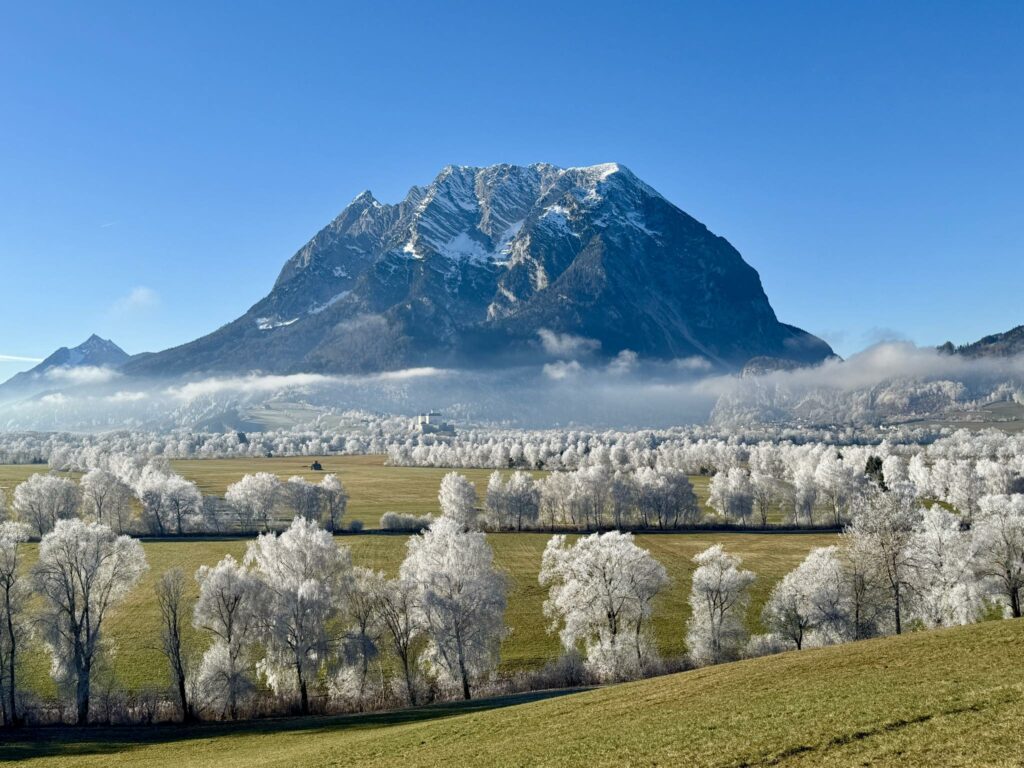 Nebelfrostablagerungen vulgo Rauhreif unter dem Grimming