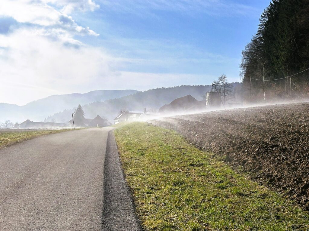 Zeit für eine E-Bike-Tour in the early morning Nebel über Bach und die Grenze nach Slowenien