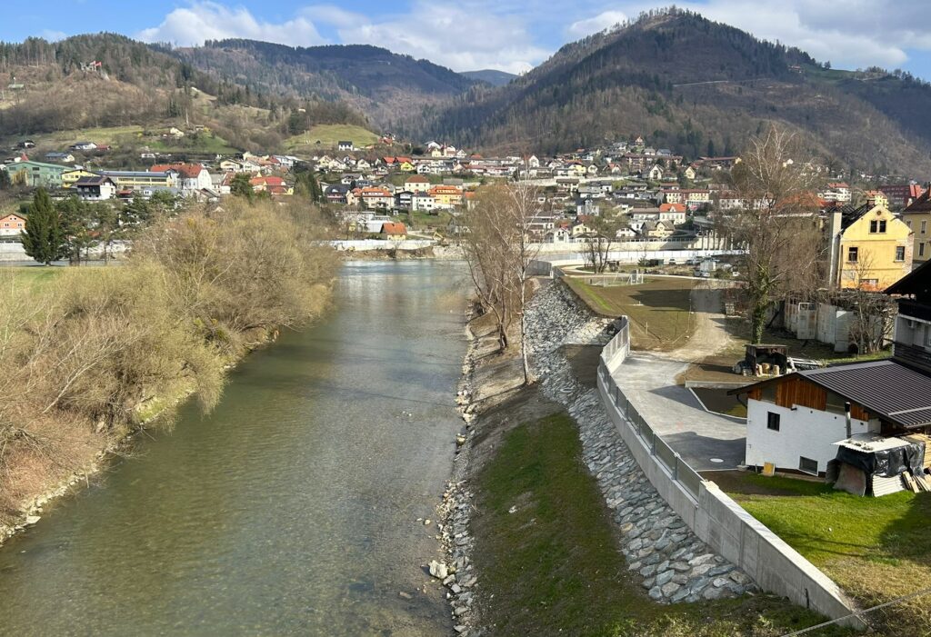 Kurz vor der Fertigstellung der Hochwasserschutzbaumaßnahmen in Dravograd