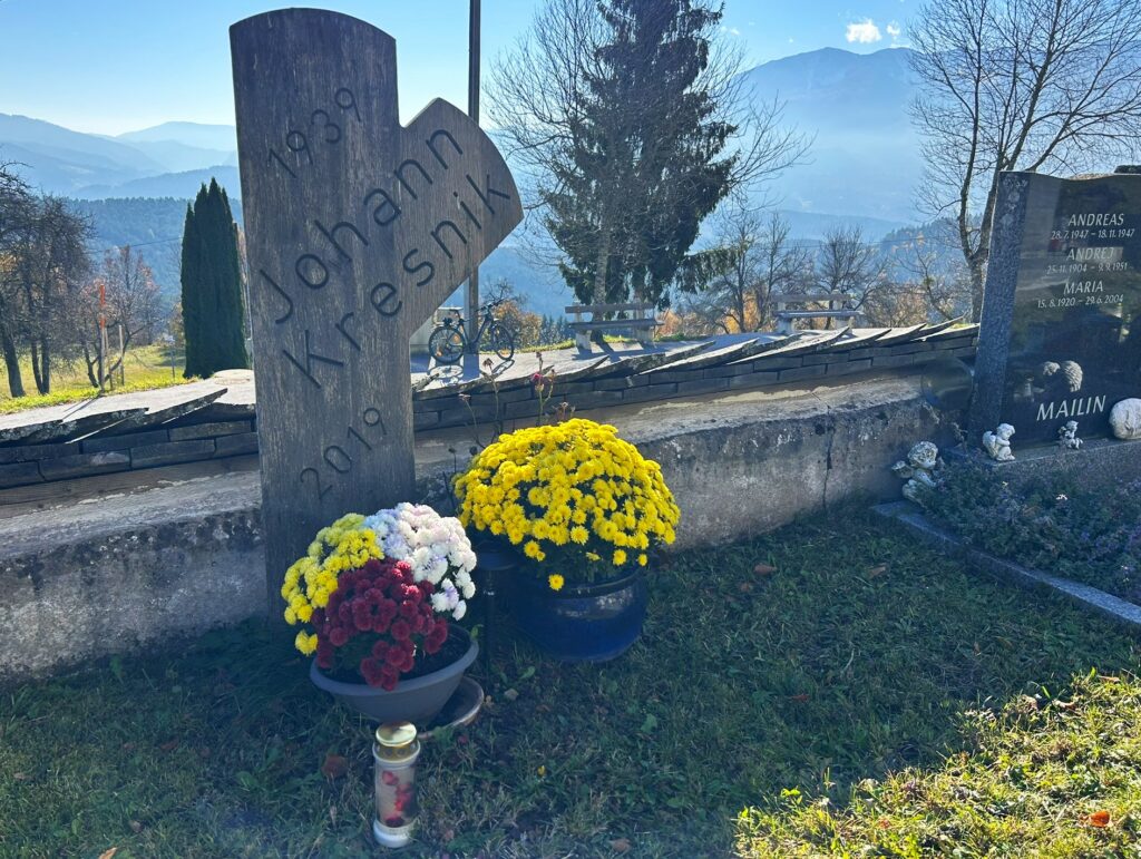 RIP. Heute fand am Friedhof in St. Margarethen die Verabschiedung von Johann Kresnik statt. Nur 30 Meter von seinem Geburtshaus entfernt – fand Johann Kresnik seine letzte Ruhestätte. Viele Künstlerfreunde und Weggefährten des weltbekannten Tanzchoreographens waren gekommen. Das „etwas andere Kreuz“ wurde von Stefan Bromann gefertigt und ziert nun die letzte Ruhestätte des Welt-Bleiburgers..