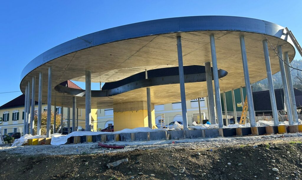 Dorf-Rad-Markt-Pavillon in Oberdorf vor der Fertigstellung