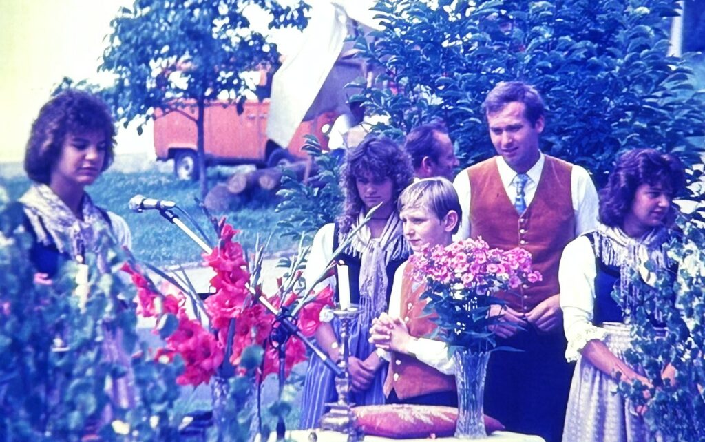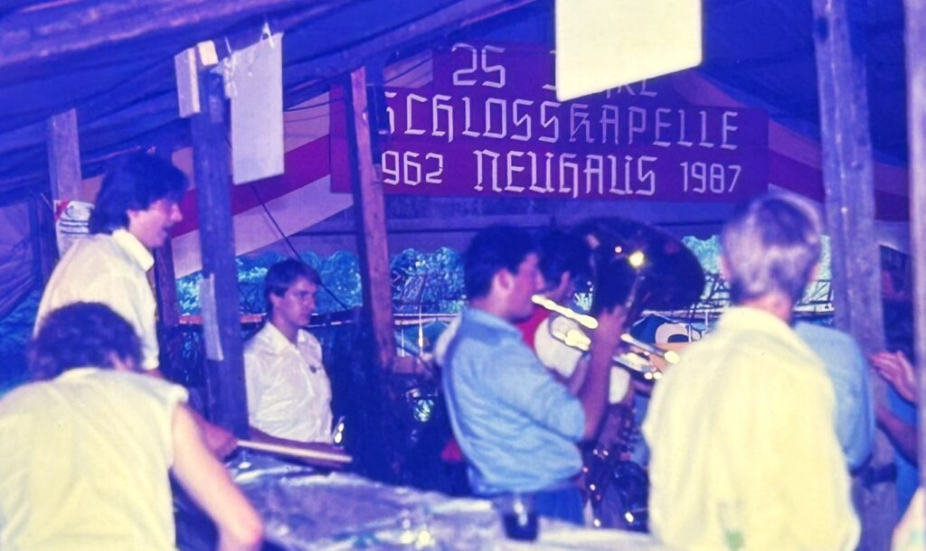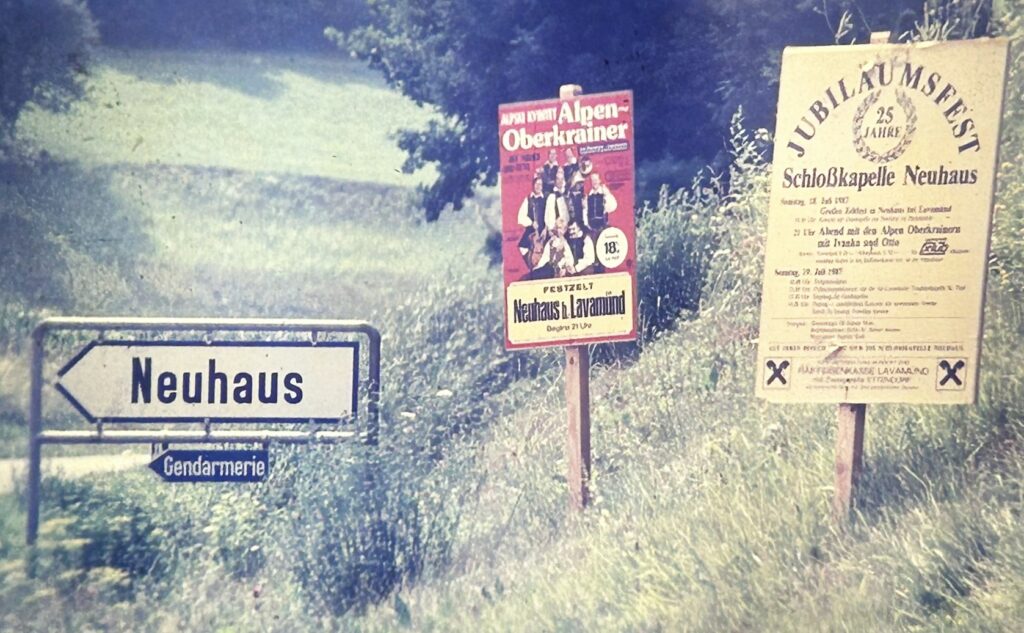 Jubiläumsfest „25 Jahre Schlosskapelle Neuhaus“ mit den Alpen-Oberkrainern und Blasmusik in ganz Neuhaus anno 1987