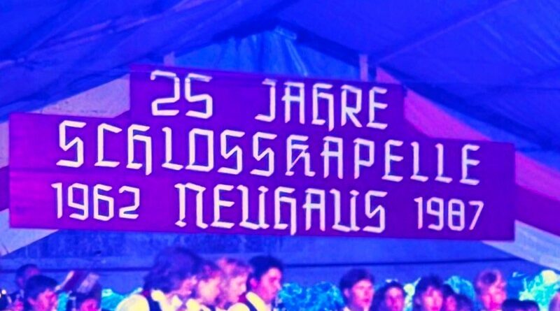 Jubiläumsfest „25 Jahre Schlosskapelle Neuhaus“ mit den Alpen-Oberkrainern und Blasmusik in ganz Neuhaus anno 1987