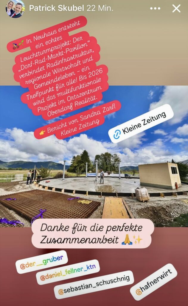 Meine erste Radtour nach der Rückkehr von der Nordsee führte mich heute zu den beiden neuen Neuhauser Vorzeigeprojekten der Baustelle des „Dorf-Rad-Markt-Pavillons“ beim Gasthaus Hafner und zu den neuen Merlin Blackout-Katastrophenschutz-Stelen im Gemeindegebiet #