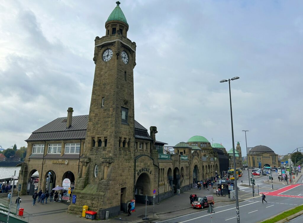 Landungsbrücken und Eingang zum Elbtunnel für Radfahrer …