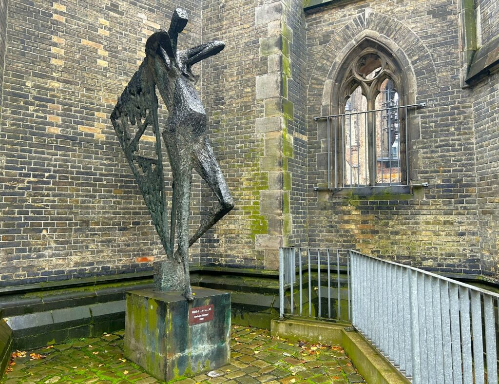 Die Bronzefigur Prüfung, 2004 ebenfalls von Edith Breckwoldt geschaffen, ist in der Apsis des ehemaligen südlichen Seitenschiffs aufgestellt und der Gedenkstätte des ehemaligen Stammlagers Sandbostel gewidmet, das, 60 km westlich von Hamburg gelegen, von 1939 bis 1945 eines der größten deutschen Kriegsgefangenenlager war. Mehr als 50.000 Menschen kamen dort zu Tode, darunter etwa 10.000 Häftlinge aus dem KZ Neuengamme. Der Sockel der Skulptur ist aus Backsteinen der Barackenfundamente aufgeschichtet, die auf dem Lagergelände von Schülern aus Sandbostel gesammelt wurden. Die Künstlerin beschriftete eine bronzene Tafel mit einem Dietrich Bonhoeffer zugeschriebenen Zitat: