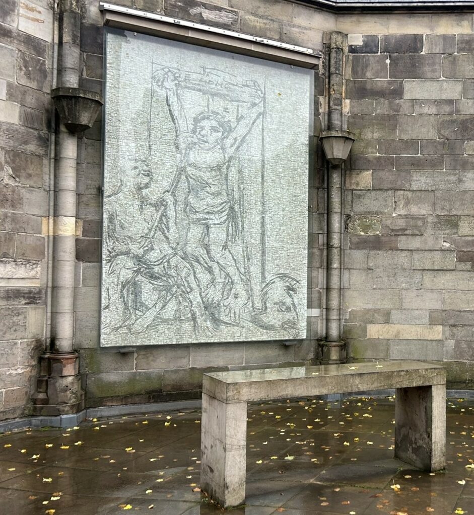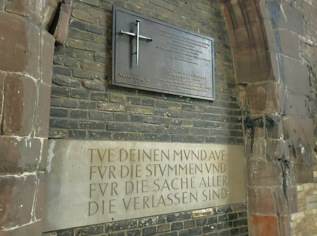 Nagelkreuz von Coventry und Inschrift in der Turmhalle