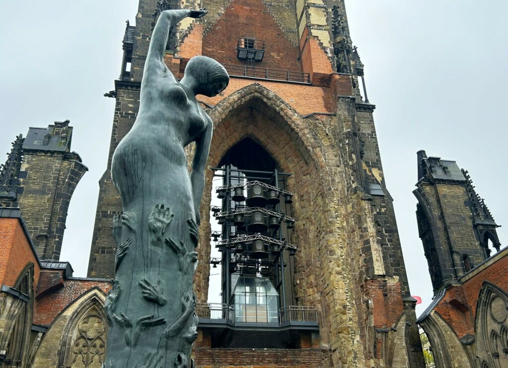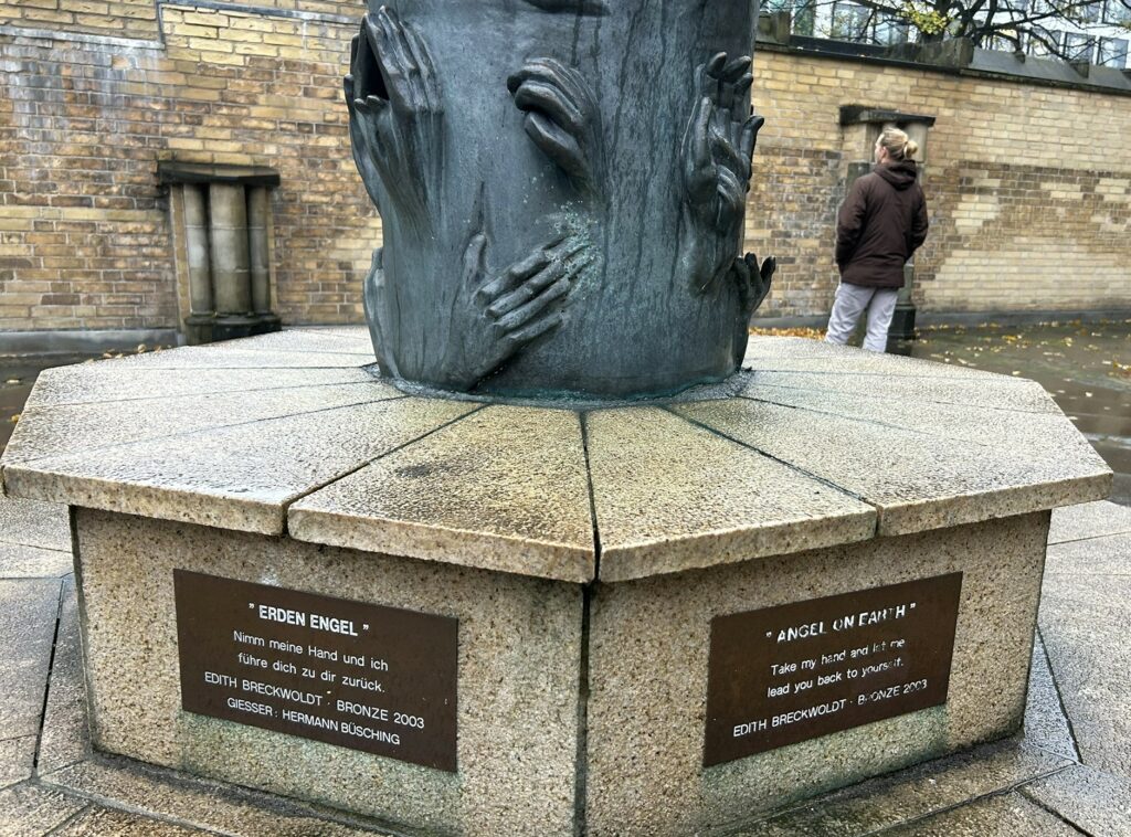 Eine zentrale Figur ist die sechs Meter hohe Bronzeplastik mit dem Titel Erdenengel aus dem Jahr 2003. Am Sockel sind in acht Sprachen der Titel und Untertitel der Plastik angebracht. Die Botschaft der Künstlerin lautet „Nimm meine Hand, und ich führe Dich zu Dir zurück“ und soll ausdrücken, dass alle Erkenntnis im Menschen selber ruht: Wenn er zu sich selbst zurückfindet, so findet er auch Frieden, dies ist wiederum Voraussetzung für Friedlichkeit zwischen den Menschen.