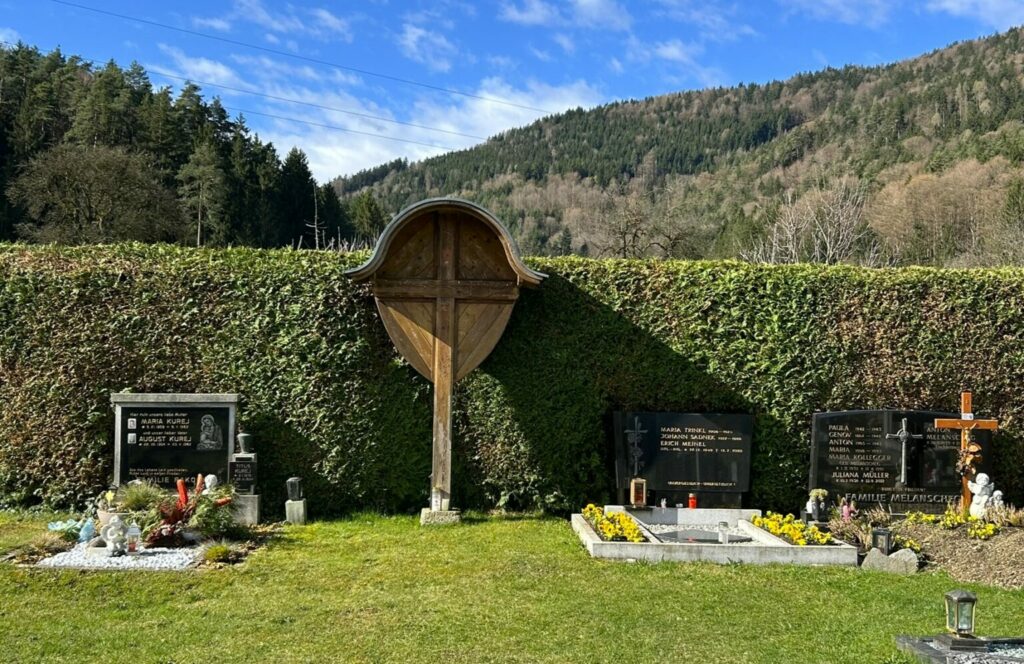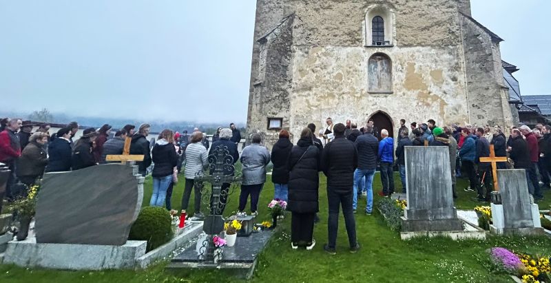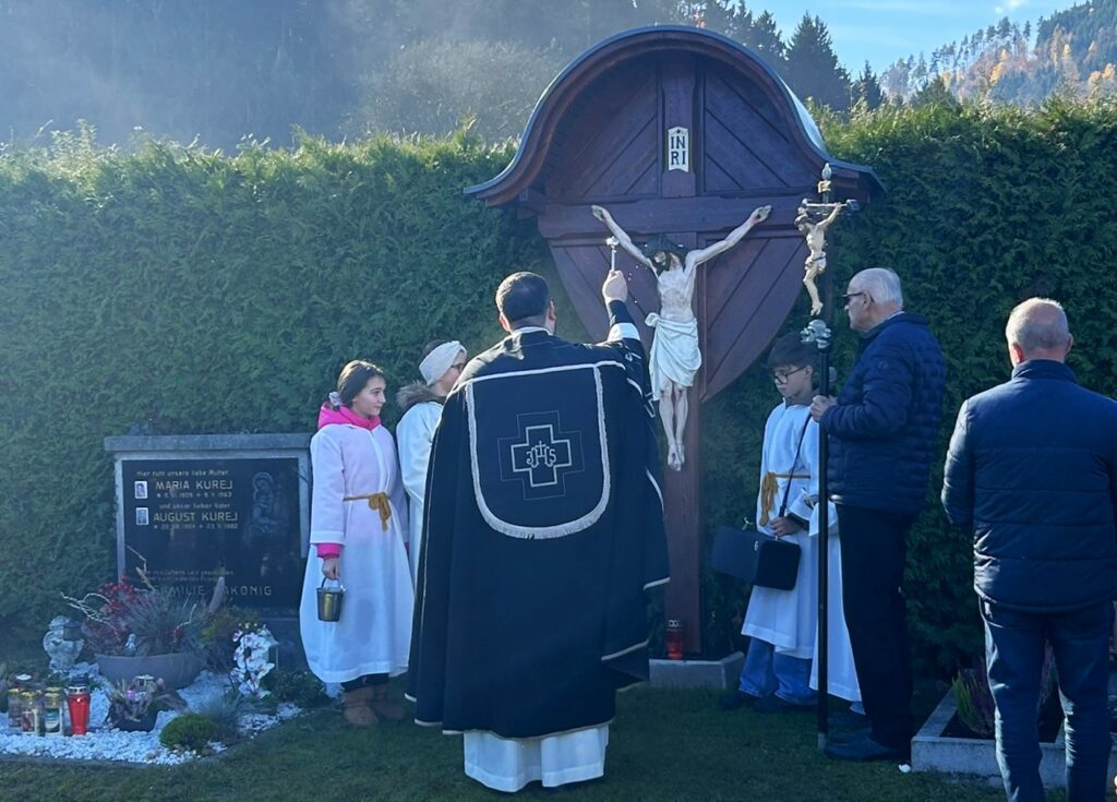 Segnung des von Mesner Friedrich Barth erneuerten Friedhofskreuzes und Gräbersegnung in Bach zu Allerheiligen