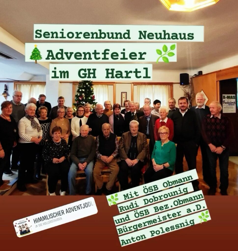 Ich schenke auch Dir einen Schmunzelstein, er kann zwar nix und ist sehr klein; doch lächelt ihr ihm öfter zu – hebt auch Deine Laune sich im Nu!Ein herzlicher Dank für die Mitgestaltung der Rorate durch das Quartett der Schlosskapelle Neuhaus am ersten Adventsonntag in Schwabegg, heute in Bach und am dritten Adventsonntag in der Pfarrkirche NeuhausRoratemesse mit Dechant Monsignore Mag. Ivan Olip, der nun umsichtig als Moderator unserer beiden Pfarren fungiertGeburtstagsgrüße zum 75er von Dechant Olip und zum Namenstag von Maria SadnekRorate in der Filialkirche Bach und Besuch im Rüsthaus zum AdventfrühstückSchöne Weihnachtsfeier des Neuhauser Seniorenbundes im Gasthaus Hartl