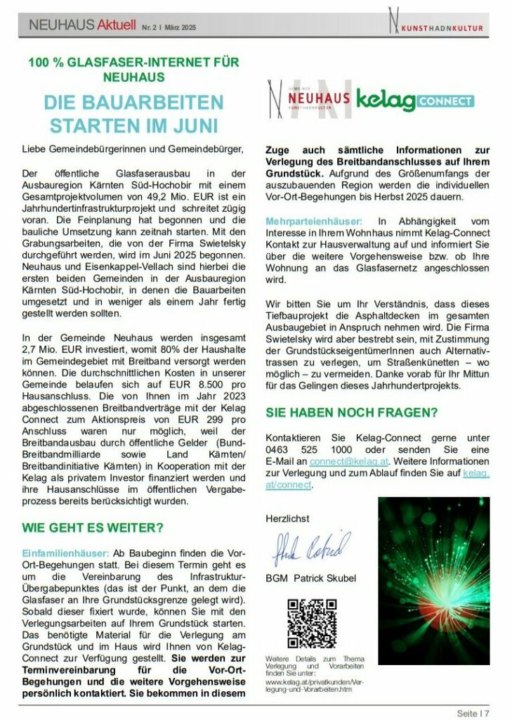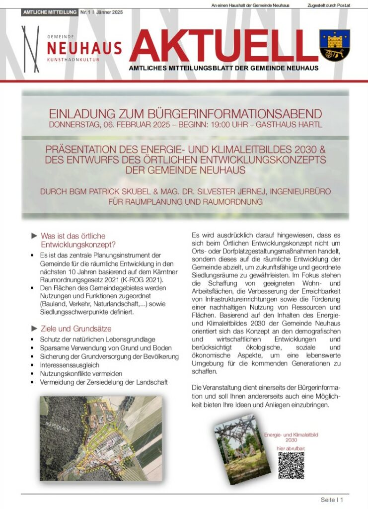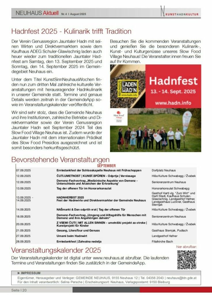 Viel Glück dem Brautpaar!Danke allen Helfern bei der Instandsetzung des Bacher Feldweges (Gemeindestraße). Die Bacher Felder sind touristisch sehr beliebt. Danke der Gemeinde für die Schotterkosten und dem Transporteur Dobrounig Thomas. (Facebook Reinhold Jamer) GlasfasertimeGegen den Strom: Frauen mit Kopftüchern gesehen von Pasolini, Werner Berg, Hrdlicka und PölzZu Gast bei der Bildstocksegnung durch Pfarrer Wutte beim vulgo Janesch in Heiligenstadt in den 1990er Jahren (Unterkärntner Nachrichten)Sitzung des Gemeinderates am Dienstag, dem 29. Juli 2025 „zum Wohl der Gemeinde Neuhaus“KirchtagssommerZum Gedenken an Maria MeschnigPudlacher Dorffest beim Gasthaus Sternjak mit dem Familienchor TschreschnigBrassQuintett BlechReiz brachte gute Laune in den Kultursaal Lavamünd