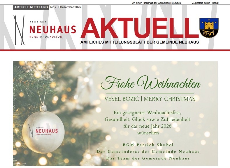 Ich lade Euch nun ein, meinen Neuhauser Jahresrückblick 2025, vielleicht verbunden mit einigen musikalischen Schmankerln an den nun folgenden Feiertagen anzusehen: