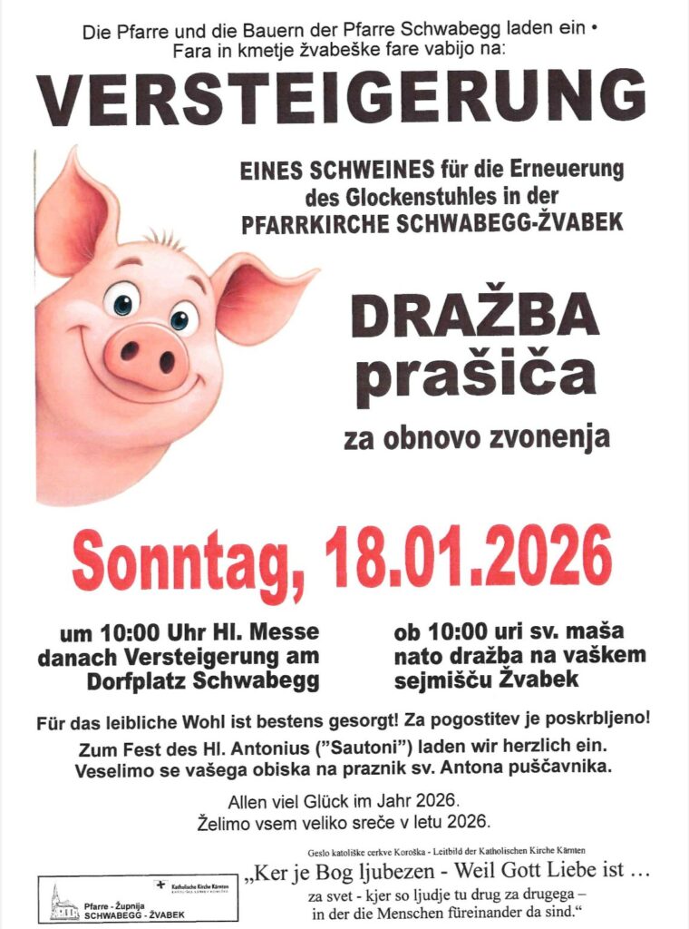 Gottesdienst zu Ehren des Hl. Antonius zelebriert von Pfarrer Mag. Tivadar Jasura. Danach folgte, wie in den vergangenen Jahren die Versteigerung eines Schweines am Dorfplatz. Das Schwein wurde heuer von ÖR Stefan Domej gesponsert. Die Versteigerung hat Andreas Stefitz durchgeführt und Josef Micheu hat die Sau ersteigert. Gesamtorganisation Vizebürgermeister Benjamin Malle.