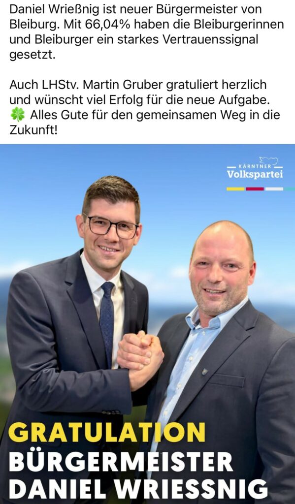 Herzliche Gratulation lieber Herr Bürgermeister Daniel Wrießnig #