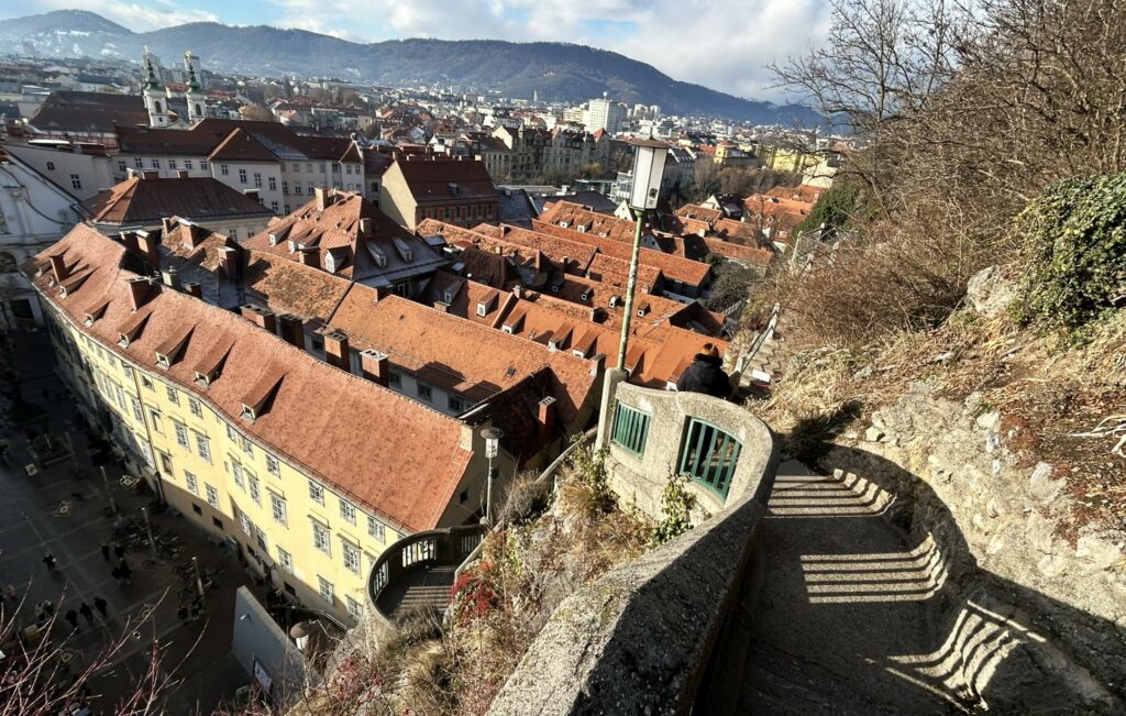 Hinauf auf den Schlossberg und auch in 30 Sekunden herunter