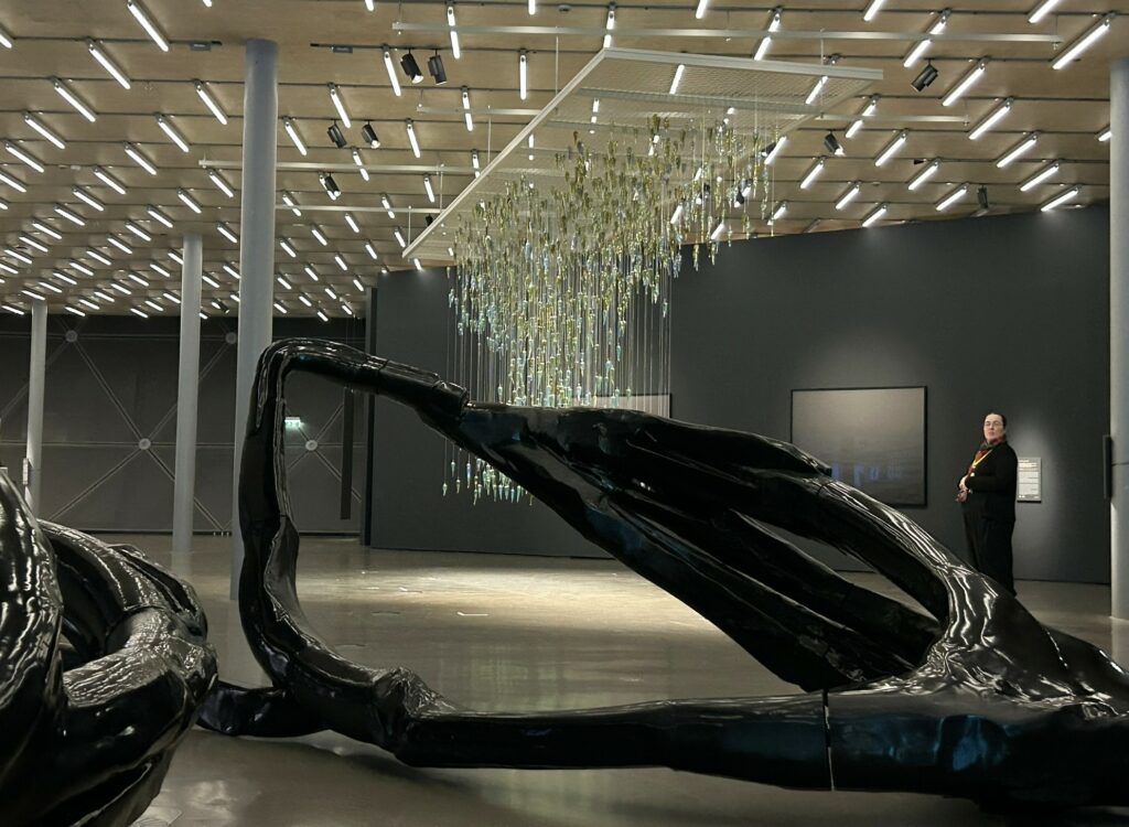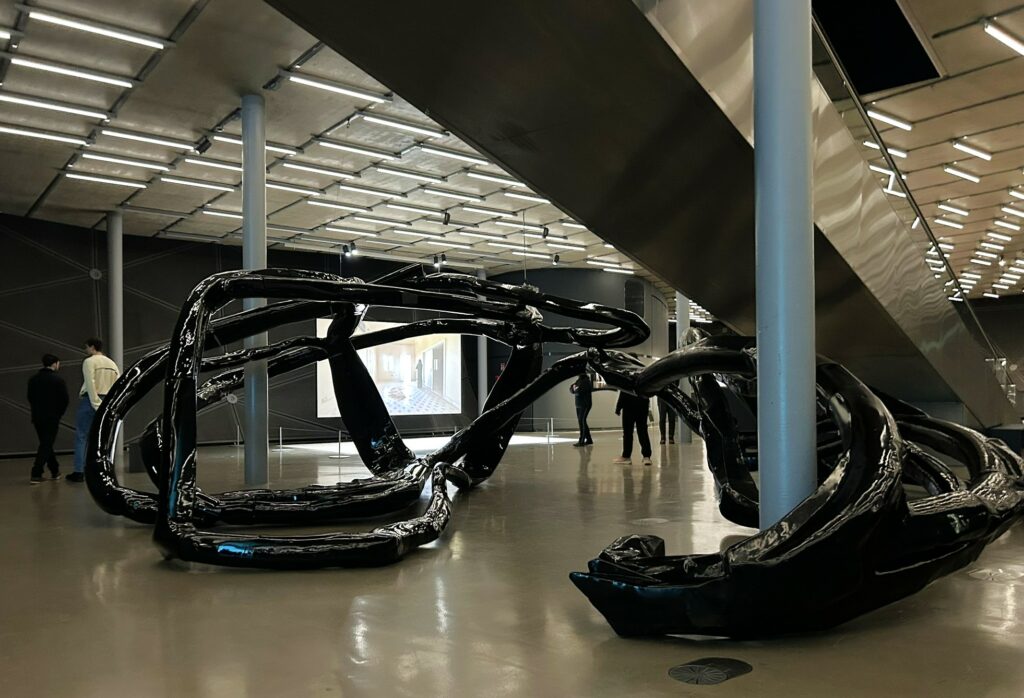 Die Skulptur Black Market: 6GB ending – aus anorganischem Material gefertigt und mit einer Oberfläche, die an die Lackierung eines Autos erinnert, gleichzeitig aber organischen Formen ähnelt (speziell frühen Organismen und myzelischen Strukturen) – verbindet verschiedene Zeitlichkeiten und Hybridformen gerade durch ihre Materialität. Die ausgestreckten Arme und ihre Verbundenheit vermitteln, ähnlich wie Frank Stellas Gemälde, das Gefühl von Dehnung und Verkleinerung bis zur Unendlichkeit. Die Haltung der Skulptur ist gewollt mehrdeutig. Ihre ausgestreckten Arme können als greifend, wachsend oder bedrohend interpretiert werden. Ist die Gestalt bedrohlich oder offeriert sie eine neue Form der Existenz?