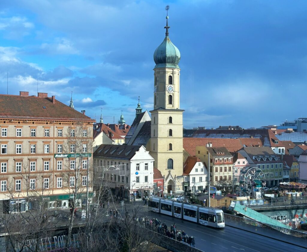 Mit der Straßenbahn ist man bald am Hauptplatz und in der Herrengasse