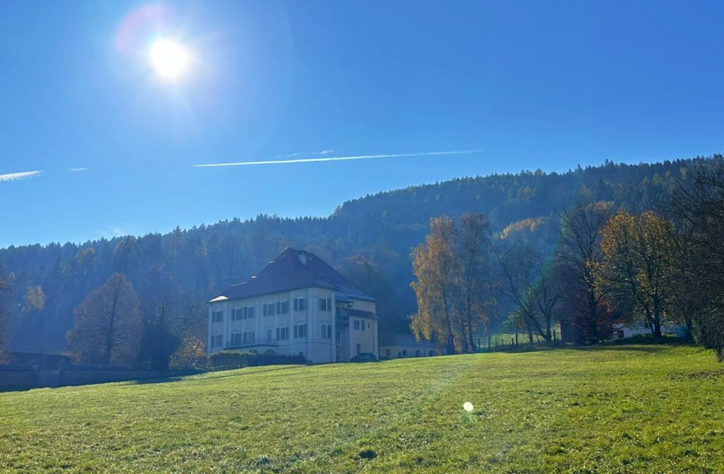 Über Bach zum runderneuerten Dvorec Bukovje und zur Rabensteiner Winterlinde