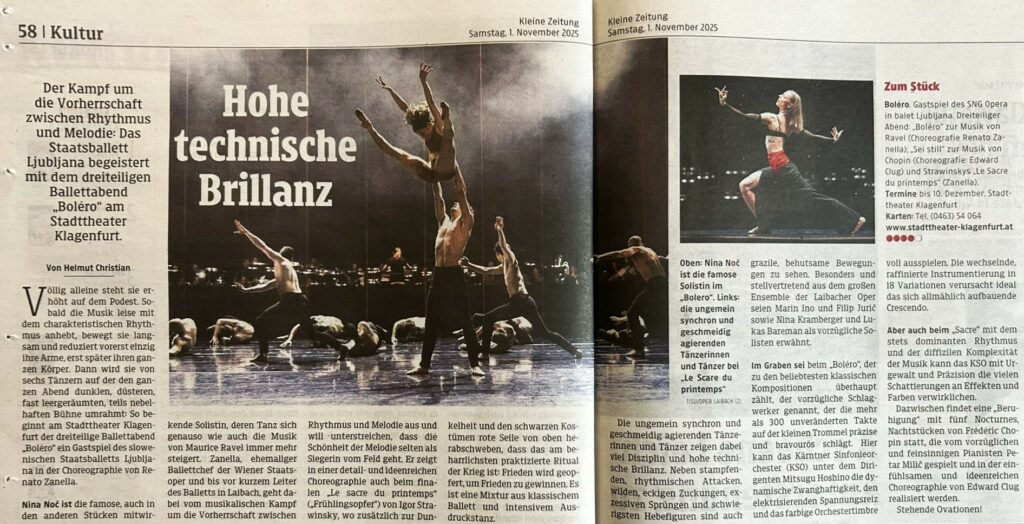 Vorweihnachtliches Balletterlebnis mit Ravels „Bolero“, Chopin und Strawinsky in Klagenfurt