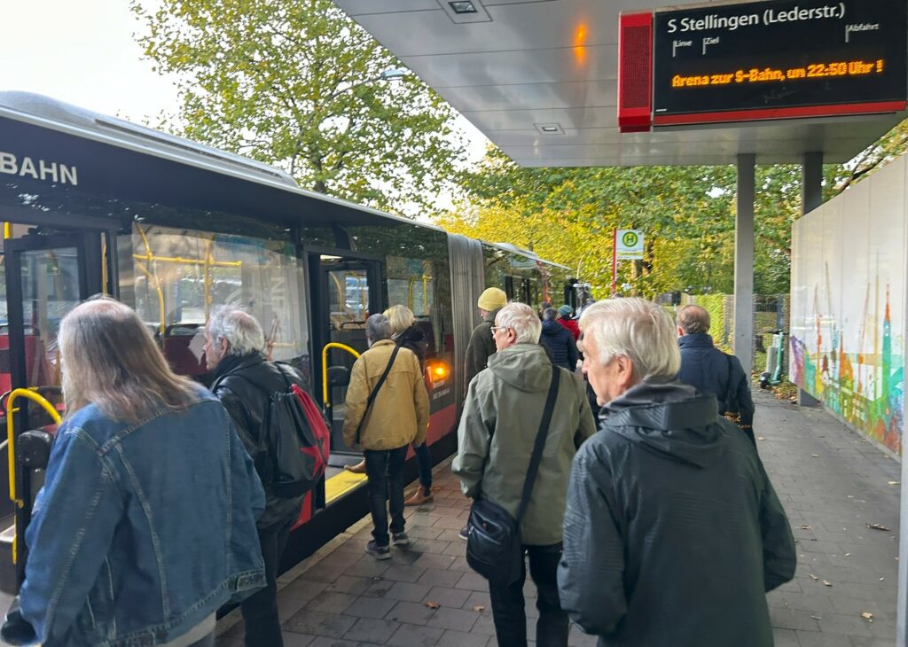 Berliner Altersgenossen auf dem Weg zur Arena per Shuttle-Bus