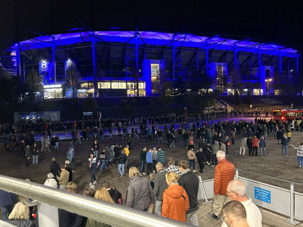 Gegenüber das Volksparkstadion des HSV