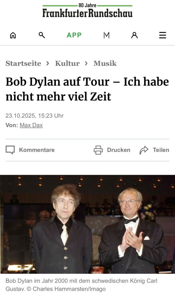 Minutenlanger Applaus und standing ovations auch nachdem nach einer kurzen Verbeugung Dylans gleich die Lichter ausgingen.