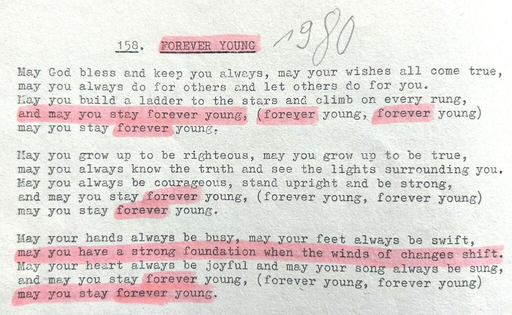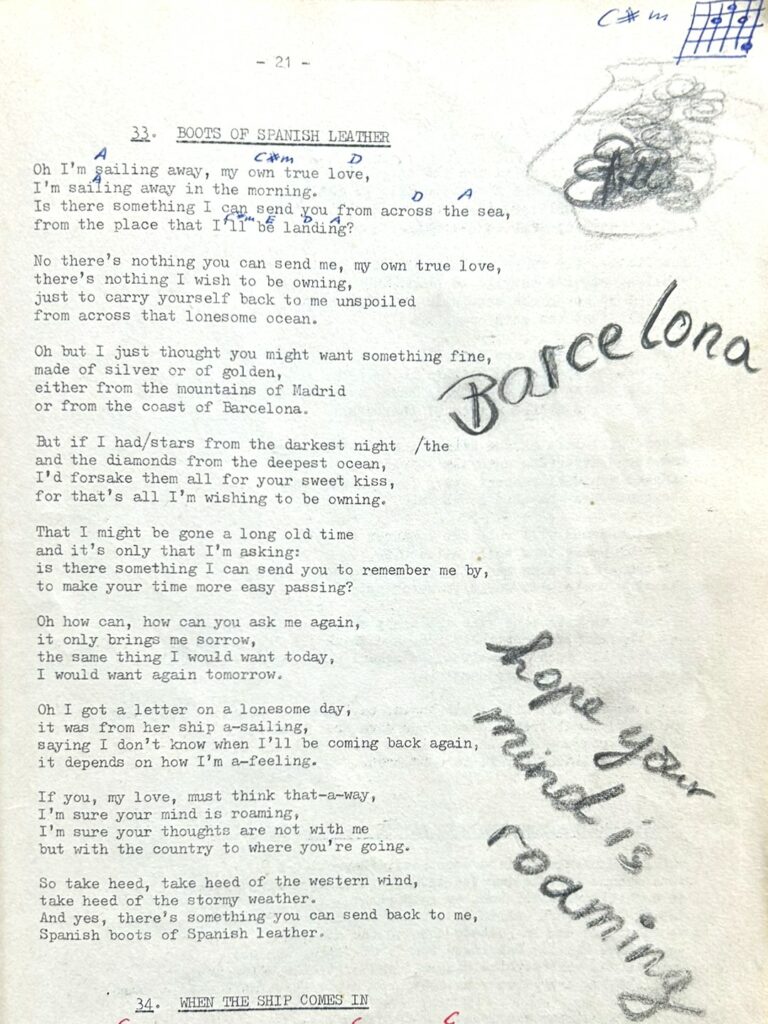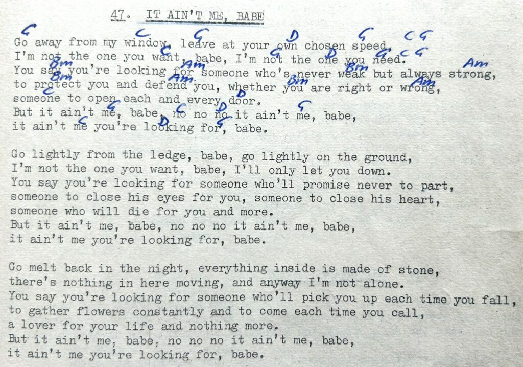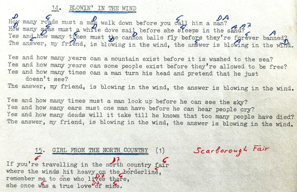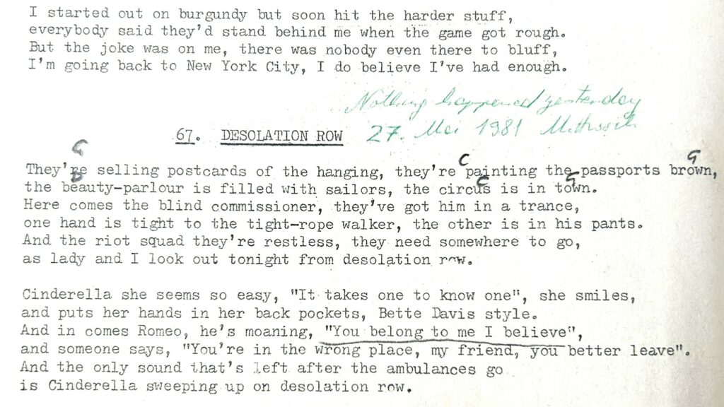 Lied aus meinem Bob Dylan Songbook, gekauft 1975 irgendwo in Amsterdam