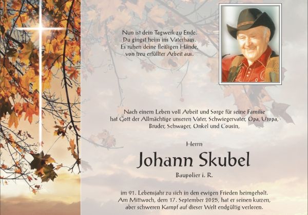 Allgemein Zum Gedenken an Johann Skubel 3. Oktober 20253. Oktober 2025 Karl Pölz Kärnten, Neuhaus, Pfarre